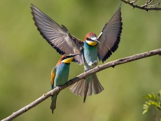 Da diese Vogelarten sehr störungsempfindlich sind, hat die Gruppe die Bienenfresser aus größerer Entfernung beobachtet.
