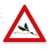 Verkehrsschild / Gefahrenschild Achtung Störche. Gefahrenschilder nach StVO und praxisbewährte Schilder stellen im Straßenverkehr eine Anordnung dar, die am Standort des Schildes oder ab diesem zu befolgen ist. Dieses Verkehrszeichen kann als Einzelschild oder in Kombination mit Zusatzzeichen, die die Symbolik näher erläutern, eingesetzt werden.