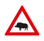 Verkehrsschild / Gefahrenschild Achtung Wildschweine. Gefahrenschilder nach StVO und praxisbewährte Schilder stellen im Straßenverkehr eine Anordnung dar, die